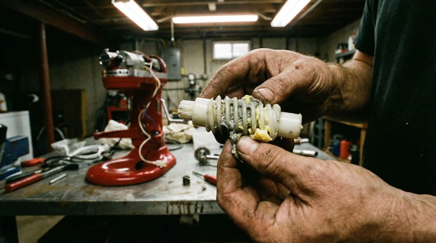 To evaluate the health of your appliance, unplug it and perform a manual spindle test. Reach up and grip the planetary shaft (the piece where you attach the paddle). Gently try to rotate it back and forth. A healthy gear system will have less than a quarter-inch of ‘play’ or looseness. If the shaft freely twists significantly before catching, your gears are dangerously worn down. You must alter your ingredient preparation immediately before the gear fails entirely in the middle of a heavy dough or thick batter.